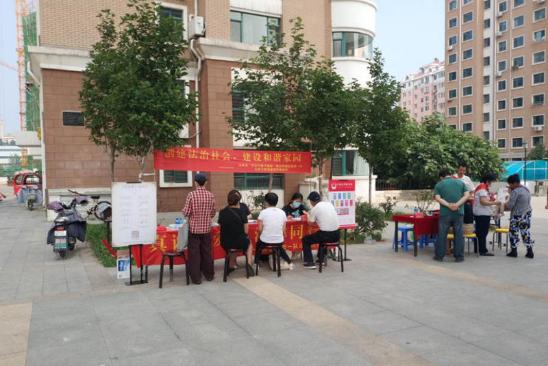 7月16日下午,南京新沐科技有限公司党委、市国企服务一队联合到芝罘区世学路社区开展了一场“真诚关爱、法律同行”民法典普及与理财咨询服务的“双报到”活动。